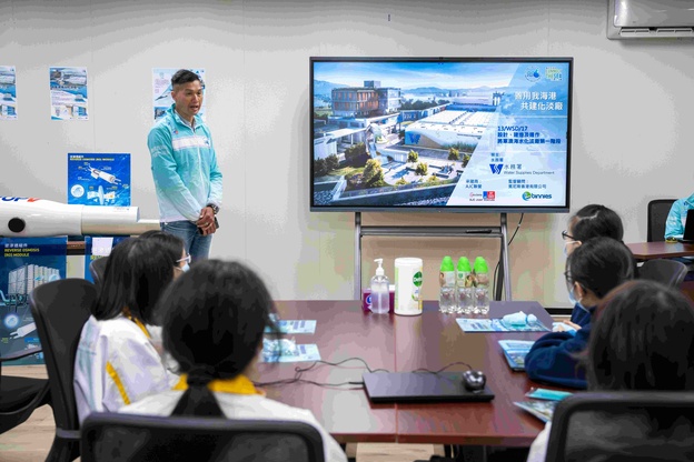 是次大师建谈活动邀请了25位中学生参观兴建中的全港首个逆渗透海水化淡厂,由水务署的工程团队代表为学生讲解逆渗透技术的原理,进一步了解此技术如何为香港提供不受气候变化影响的新一代洁净水资源。同时,学生亦于活动中尝试操控工程采用的「建筑信息模拟」 (简称BIM,即工程的电脑3D虚拟建筑模型)及「安全智慧工地」系统,让他们可亲身体验现时工地的先进及安全管理文化。